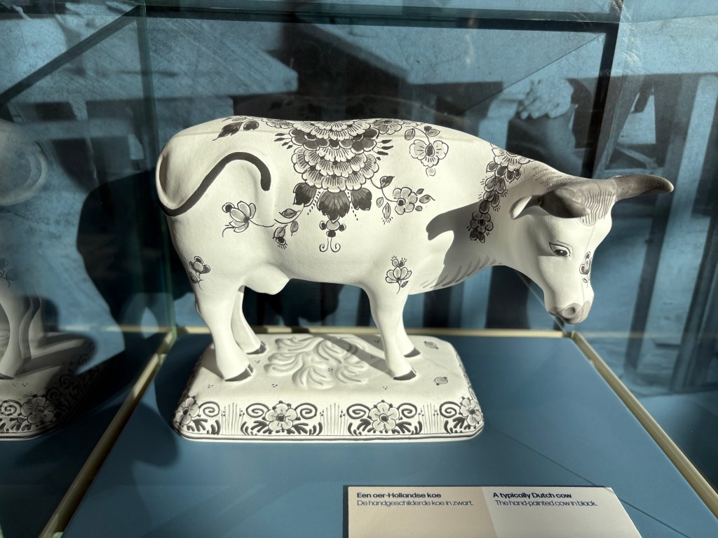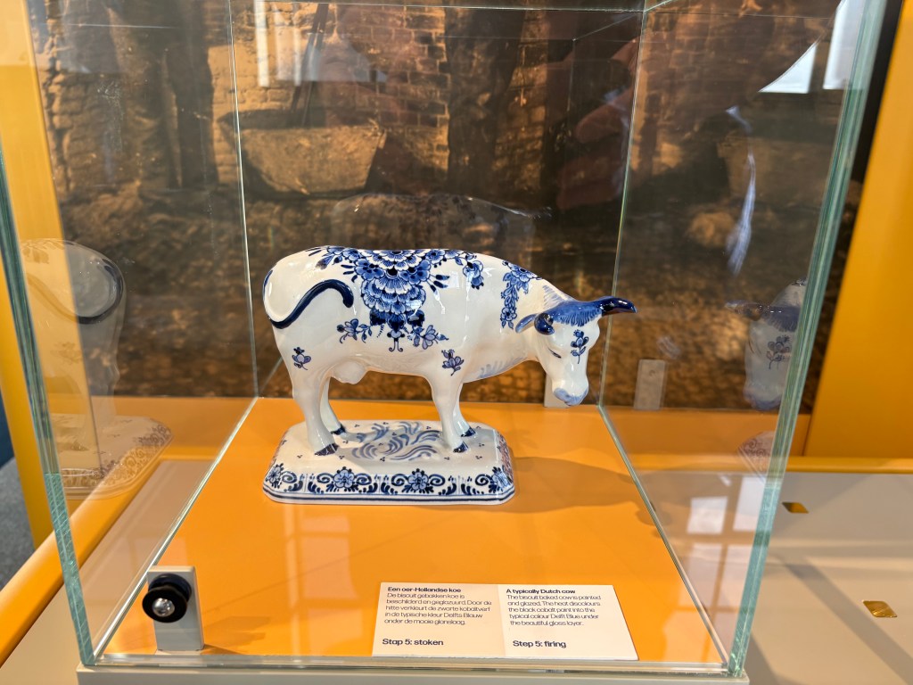 Today started with a 25 minute drive to the city of Delft. We toured Royal Delft Museum. The clay that delft pottery is made from is 10 different ingredients mixed together to create the clay. Molds are made from plaster as it helps draw out the moisture from the clay. The molds are filed with the clay mixture. Once it is set it is removed from the mold and is fired turning it from a brown to a white biscuit, now it is ready to paint.