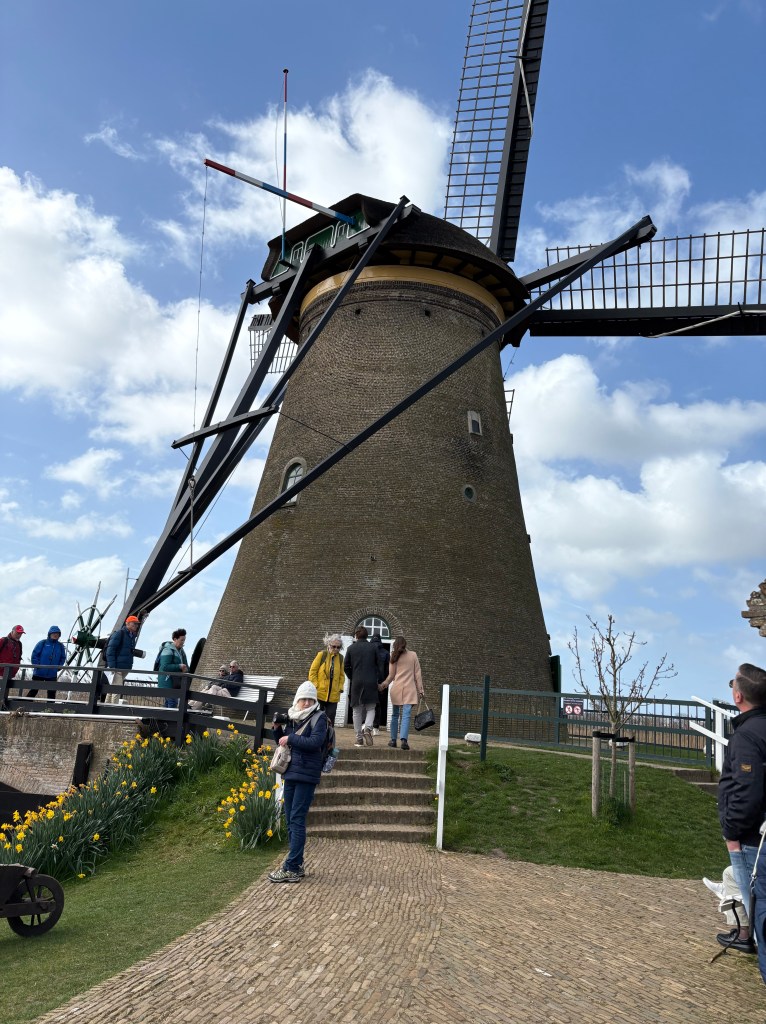 We visited Kinderdijk, a UNESCO site to see how the Dutch tamed the waters and established land below sea level. There was a series of 15 windmills and dikes that worked together to remove the water to form usable land. We got to see inside 2 working windmills, saw how the men who manned the windmills and their family lived. It was a very windy day so the windmills were rapidly turning. The wing span is about a hundred feet. An incredible sight to stand near them and watch the blades rotate.