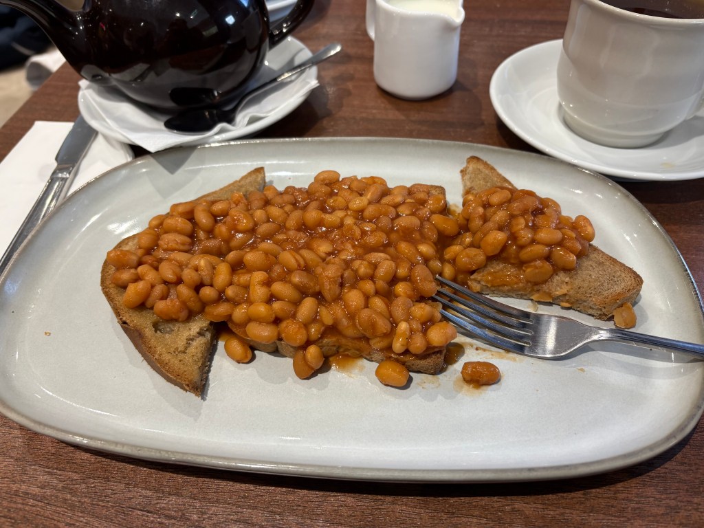 We stopped in a little town called Lymm and looked around. It was such a pretty place, they even had a coffee shop named after Reg. The biggest coffee drinker you will ever met 🙊Before we left we stopped for a quick bit to eat. Reg and I had traditional beans on toast. It was so good.