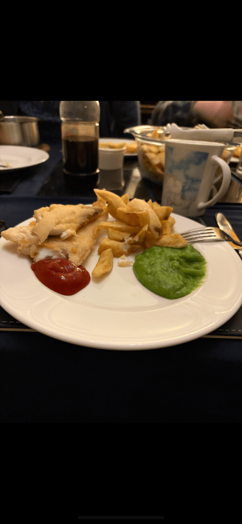 Enjoyed meeting John and Sue’s son Graham and having a fun supper also got to check another thing of my to try list. We had fish and chips with mushy peas for supper. The mushy peas were surprisingly very tasty.