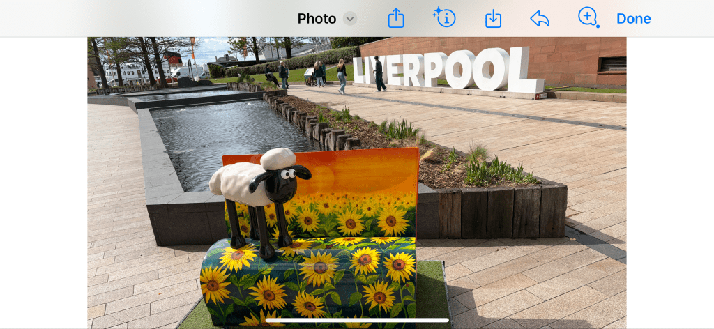 we wondered farther down the waterfront, took a photo of the Beatles statue then headed to the Cavern Club where the Beatles first started playing. We walked through Liverpool one shopping center had a quick bite to eat. We saw a few sheep from Wallace and Grommet.