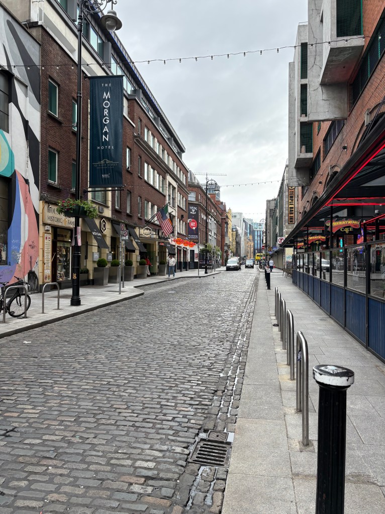 We dropped off the car in Belfast then took a bus to Dublin as we board the ferry to Isle of Man. We stayed in a hotel about 15 minutes from downtown. The hotel got really good reviews on bookings.com. I’m not sure how. The lobby is very nice but the rooms are about as big as a walk in closet. The shower is the size of a phone booth. We are getting used to small rooms in Europe as space is a premium here but this is very cramped and very run down. The carpet is stained, walls need a good washing and a fresh coat of paint but it did the job.