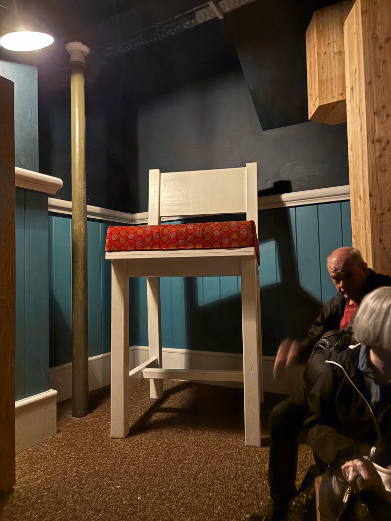 The Leprechaun Museum was a story telling museum, there were no displays of Leprechauns. It started with a storyteller telling the history of the leprechauns and fairies., how the veil between the human and fairy creatures came to be and how the magical creatures could travel between 2 worlds. The next room we went to was a little Irish cabin where story telling was the main source of entertainment and lessons . We were told the story of Cinderella but the Irish version and the history of storytelling. We proceeded to a dark room only lit up by stars in the sky, the moon coming through the trees outlining the mushrooms and shrubs growing in the forest. We sat on logs around an imitation campfire while being entertained with stories about leprechauns and their pot of gold. The final room was a trip through the rainbow which was vibrant coloured string curtains where we came out on the other side of the veil to where the magic creatures lived. We were entertained with the story of Stingy Jack and the history of Halloween and the jack o’lantern. It was so well done the hour flew by and I could have stayed and listen to so many more stories.