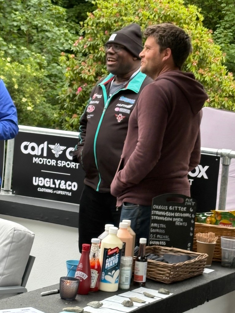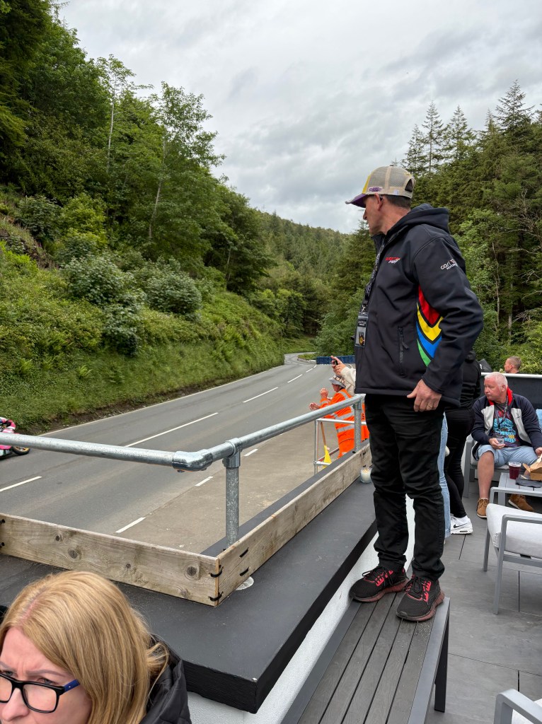 Last day on the island and it turned out to be a beautiful day. We spent the morning walking down the pedestrian shopping area and Reg did some souvenir shopping. I found it amusing to see groups of guys in full leathers going in and out of stores, carrying their coffee and bags while they wondered from one TT souvenir shop to the next. I can say Reg did his best to help their economy. I had a hard time getting everything packed, I’ll definitely have to send at least one more parcel home. After lunch we went back out to the Black Dub Pub for the VIP viewing area. The weather cooperated and we had an amazing night. I think Reg may have filled up his phone with videos.