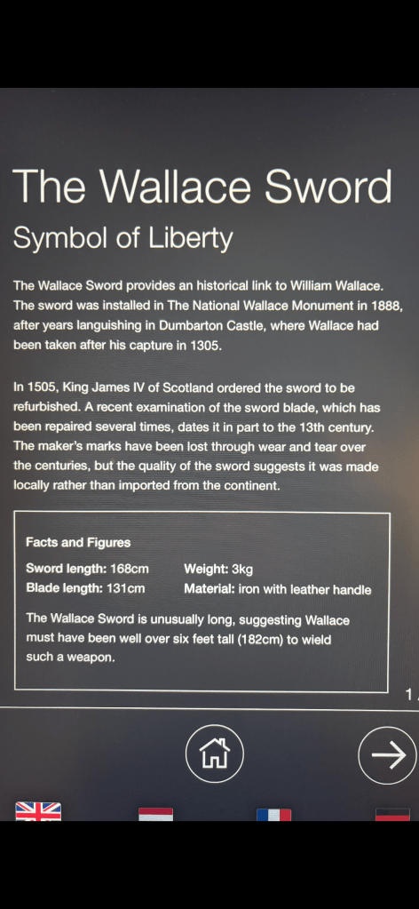 Reg climbed the 243 steps to the tower. I stayed on the grounds and listened to a period actor tell the tale of William Wallace and the battles to free Scotland.