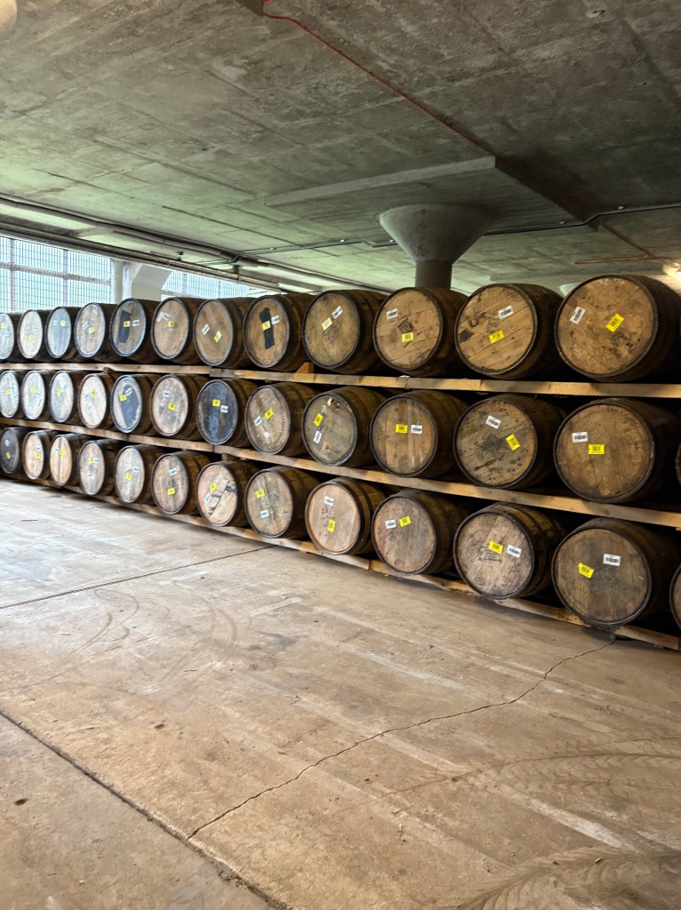 After we went to Deanston Distillery for a whisky tasting. We did the tour that took us inside the warehouse, we learned that to be labeled a scotch whiskey it has to be produced in Scotland and has to have a 40% or higher alcohol content. It is distinguished by not having a E in the word whiskey. It is spelt whisky. The whiskey is aged in barrels and what was in the barrel is what gives the whisky the different flavor profiles. They sometimes will age a whisky in one type of barrel such as a red wine barrel for 9 years then they move it to a sherry barrel or a charred barrel to manipulate the flavor. We got to try 3 different whiskey aged between 12 -15 years. We also learned about the angel and devil tax. The devil tax is the whisky that is absorbed into the barrel and the angel tax is what evaporates as the whisky ages. As the tasting was 3 drams of whisky and it’s not my favourite thing they gave us small bottles to bring the rest home in to enjoy here. They have 6 warehouses on site and each holds over a quarter million dollars worth of inventory.
