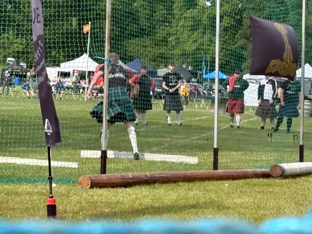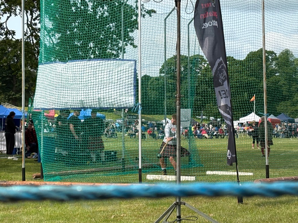 The games were held on the beautiful grounds of Glamis Castle. The games started at 10:30 with highland dance competitions. There were stalls around the perimeter of the games field. The events consisted of running and bicycle racing, throwing the caber, the shot put, the hammer as well as tug-a-war. It was such a fun day. There was a strong man competitions as well.