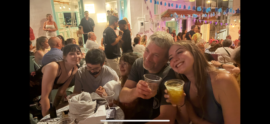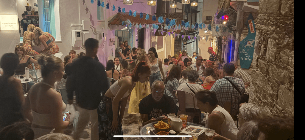 The day ended with a Mamma Mia party 2 blocks from our accommodation The bar had seats set up in the walkway , the movie was playing on a wall and they played all the Mamma Mia songs which everyone sang along to. It was such a fun night.